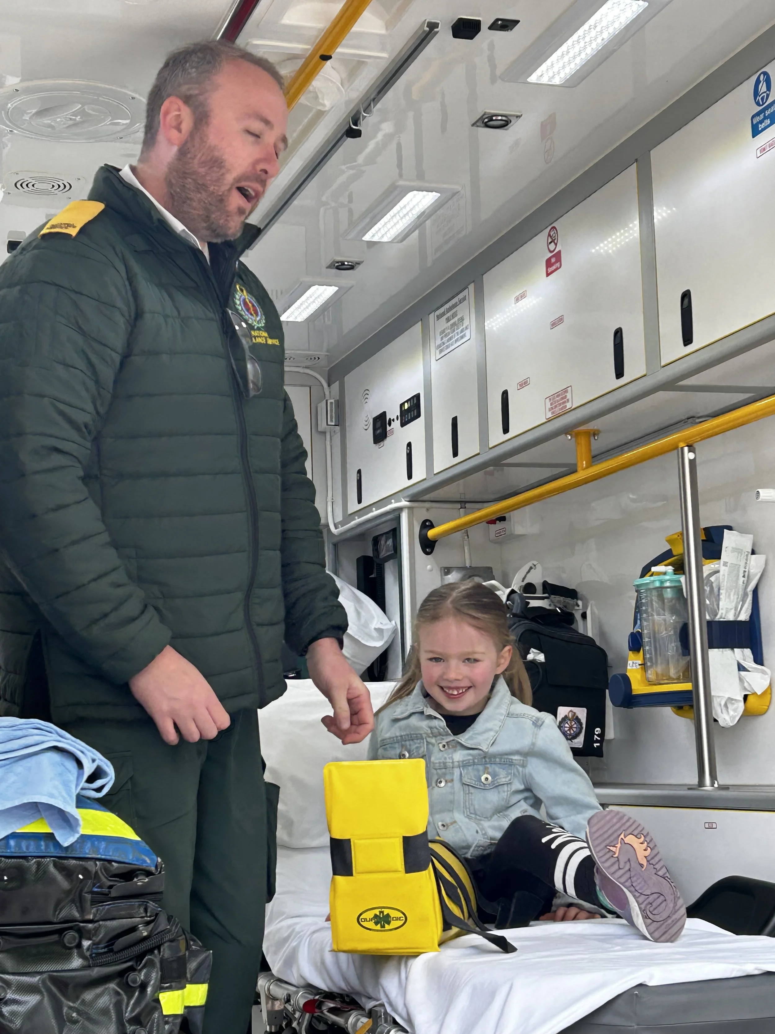 We got to turn on the lights and hear the sirens too! It was such a fantastic visit and we are very thankful to all the paramedics who help us when we need it! We made some thank you cards for Seán to pass on to the rest of the crew in the ambulance base!